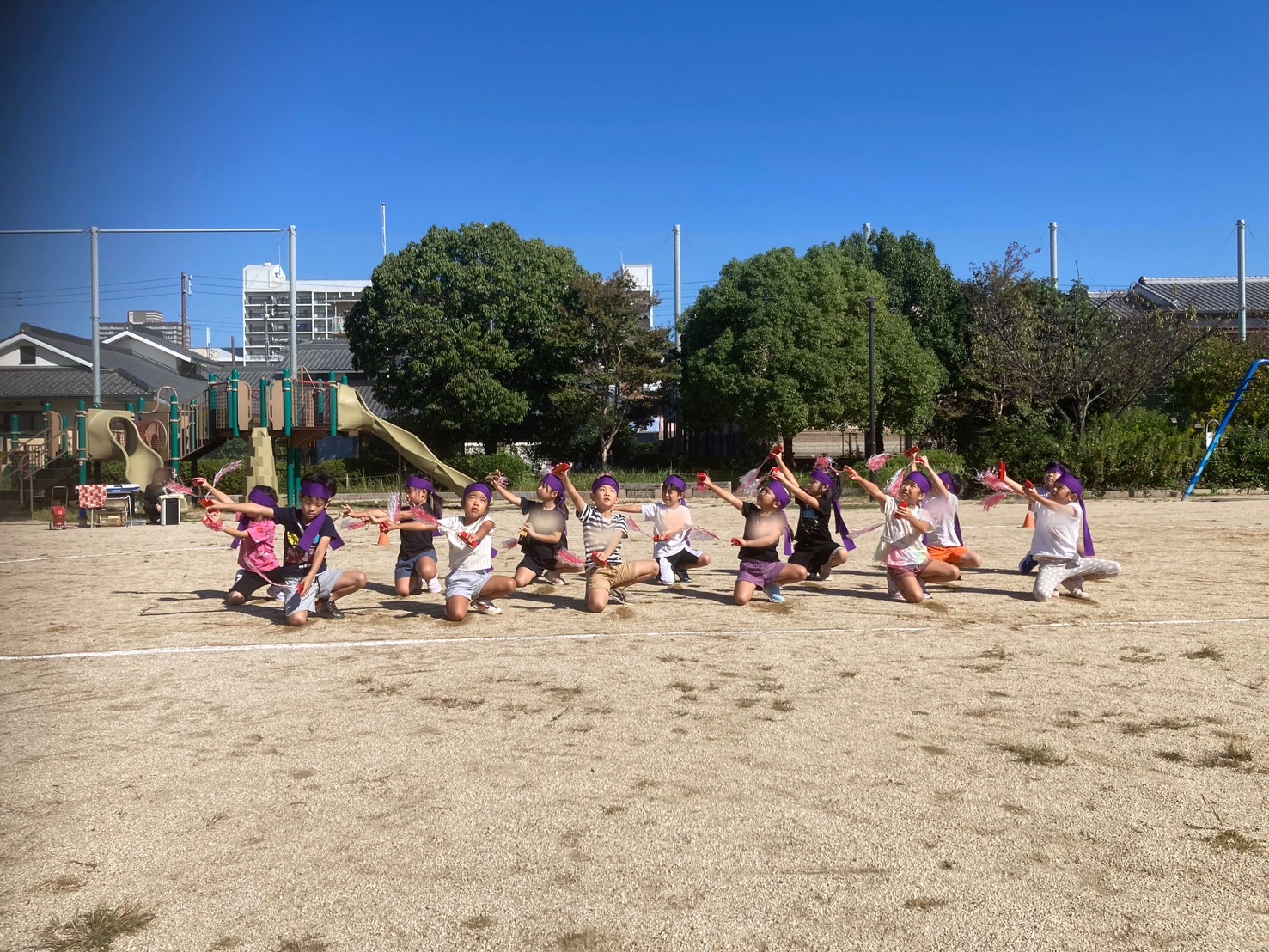 10月の運動会では沖縄の踊りを披露する事になっているかぶとむし組さん。 複雑でなかなか難しく、毎日頑張って練習に励んでいます。 今日は2人組になって、ペアの子の踊りをアドバイス。 しっかり動きを把握していなければ人に教えることも出来ませんから、自分の動きを振り返る事にもなります🙂 「もっとひざひらかないと!」 「しせいがわるいで」...