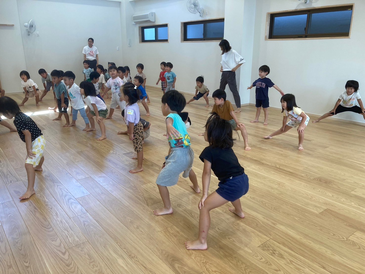 幼児3クラス合同のリズム運動の練習が始まりました。 運動会に向けてがんばろう❗️