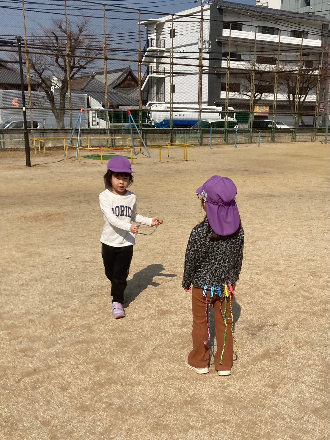 実習生さんと一緒に、久しぶりに公園でしっぽ取りをしました☀️ あたたかで春のようにポカポカでした😀