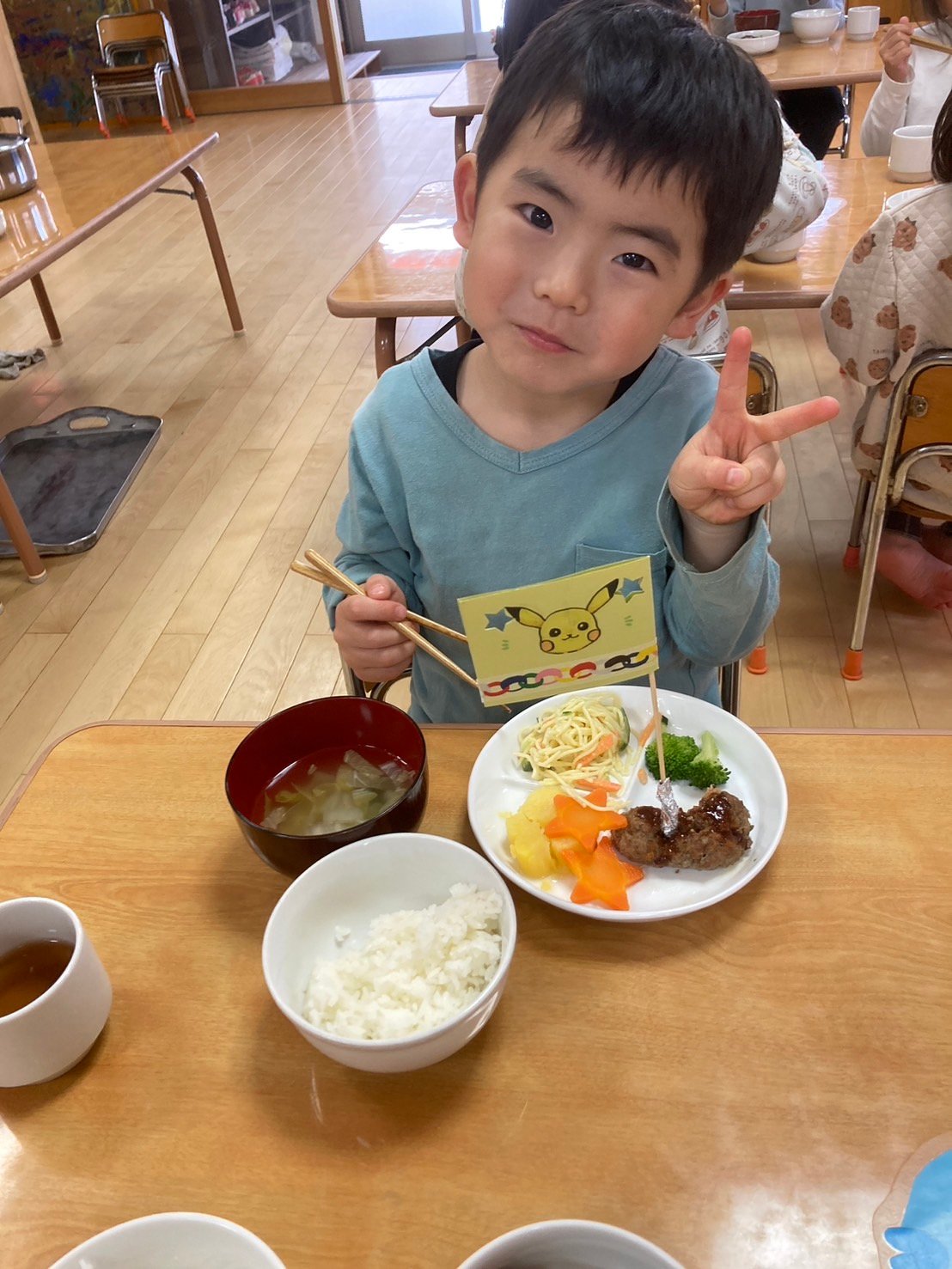 今日は1人ずつお名前を呼ばれたらお返事をして、お祝いの色紙をもらいました。 みんな立派な姿を見せてくれました✨ ほたる組さんは、銭太鼓もがんばりました。