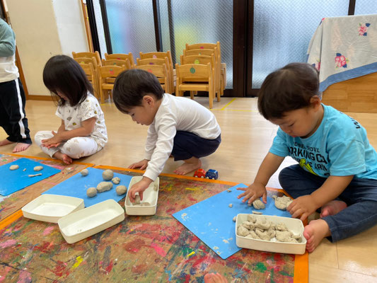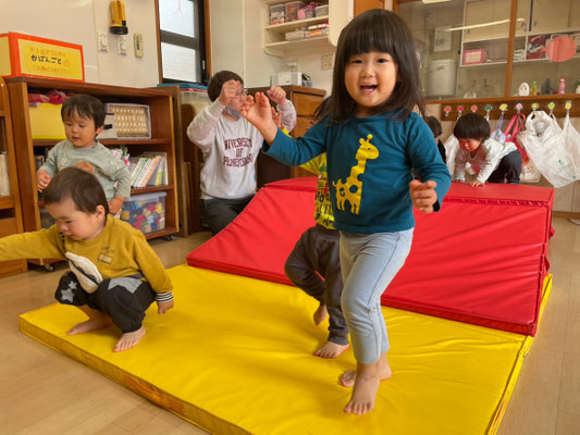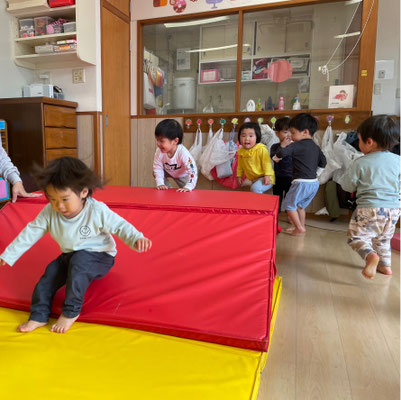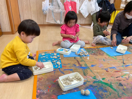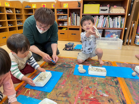 みつばち組 · 2023/04/07 運動遊び&粘土 体を動かしたり、粘土でこねこねしたり、「できたよ〜」と、たくさんお喋りして教えてくれるみつばちさん💕 大きな画板を敷く時にびゅーん!と風がふくのでそれに大笑い〜(笑) 「きゃきゃきゃ〜」と、とても良い笑顔でした☺️ tagPlaceholderカテゴリ: 令和5年度みつばち組