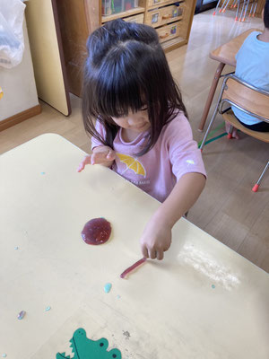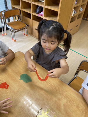とんぼ組 · 2023/05/30 スライムってきもちい〜い✨ スライムで遊びました。 赤と青のスライムを混ぜ合わせて、「ムラサキ色になった!」と発見をしていました😀 コップに入れてフリフリして丸くしたり、ビローンと伸ばしてヘビをつくっていました。 tagPlaceholderカテゴリ: 令和5年度とんぼ組