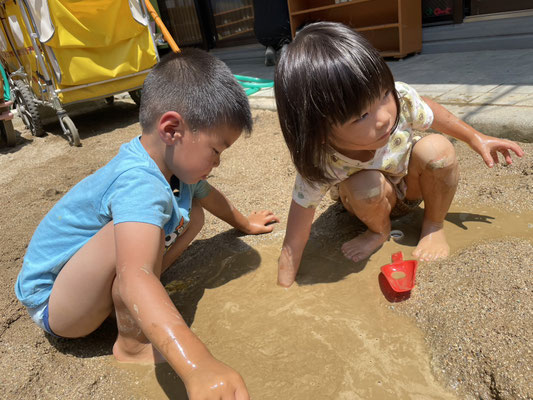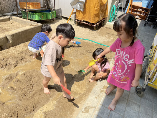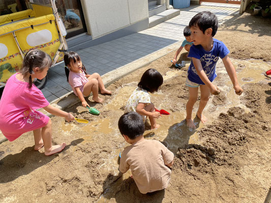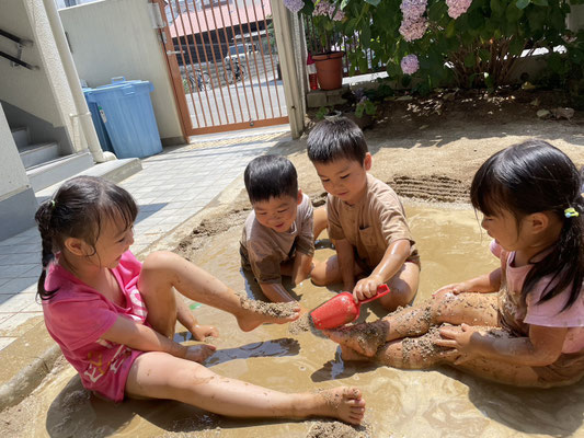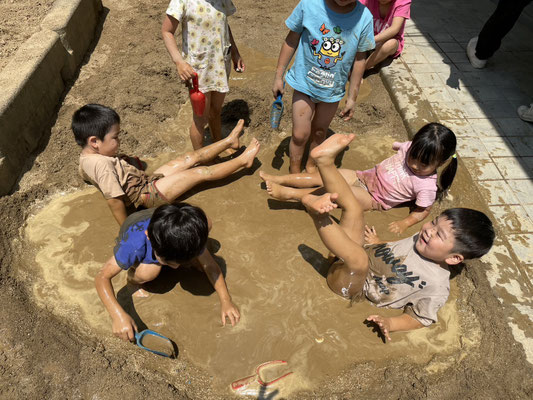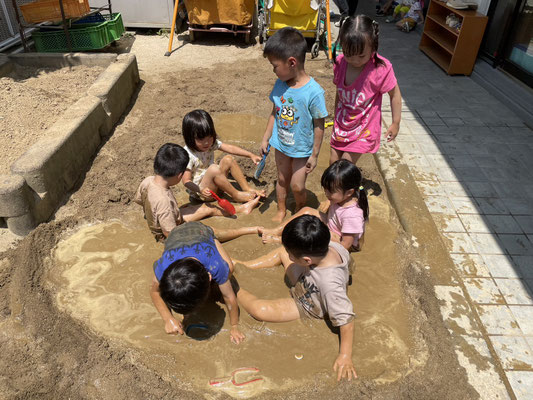 ほたる組 · 2023/06/19 どろんこあそび 園庭でどろんこあそびをしました。 水が流れる川を作ってPETボトルのキャップを流したり、お風呂を作ってその中に落とし穴まで仕掛けたりとたっぷりと遊びましたよ。 tagPlaceholderカテゴリ: 令和5年度ほたる組