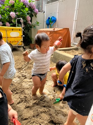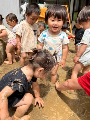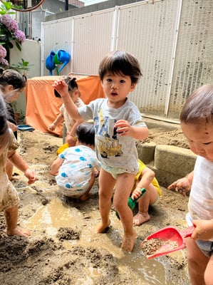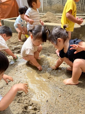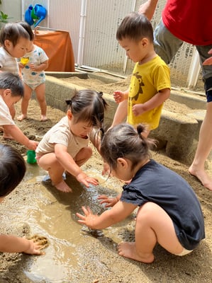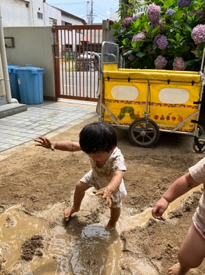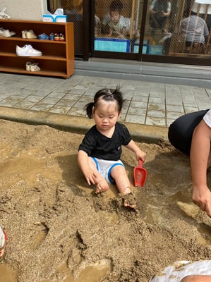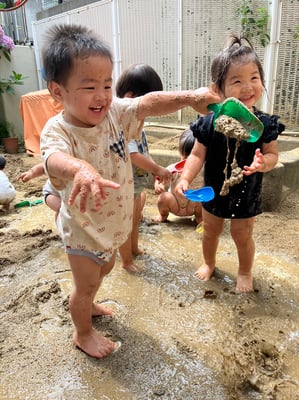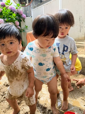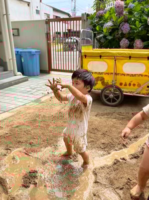 ちょうちょう組 · 2023/06/21 どろんこ遊び 砂に水を入れ、泥で遊びました。 戸惑う子もいれば、手で触って握ったり、スコップですくったり、泥水の中に足を入れたりと大胆に遊ぶ子もいました❗️ 生き生きした表情の子どもたち。全身で泥を楽しんでいましたよ✨ tagPlaceholderカテゴリ: 令和5年度ちょうちょう組