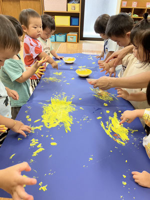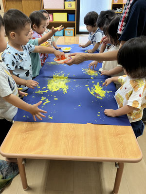ちょうちょう組 · 2023/08/04 ジンベイザメ 手や指に絵の具をつけて描く、フィンガーペインティングで制作をしました。 迫力満点のジンベイザメが完成しましたよ✨ tagPlaceholderカテゴリ: 令和5年度ちょうちょう組