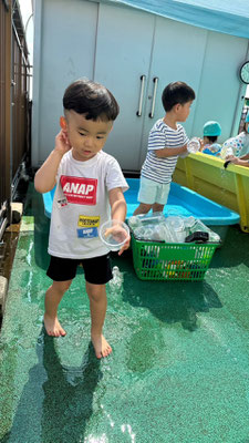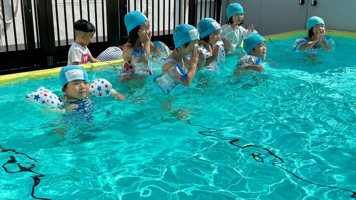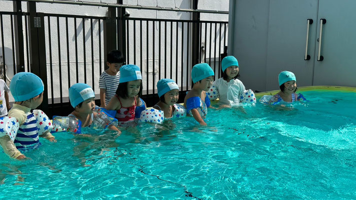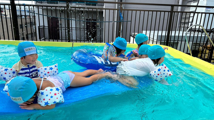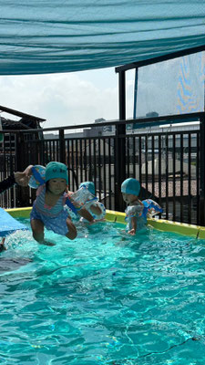とんぼ組 · 2023/08/21 ビート板からジャーンプ! 今日も暑いので屋上のプールに入りました✨ お水がいつもよりたくさん! 大型のビート板の上に立って、そこからジャーンプ🌊❗️ 「やらなーい!」って最初は言っていた子も、お友だちがジャンプしているのを見ると、楽しそう!😀って思ったようで、「やっぱりやる!」とチャレンジしていました。 tagPlaceholderカテゴリ: 令和5年度とんぼ組
