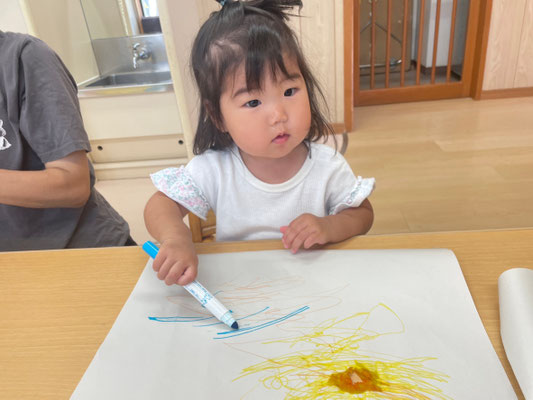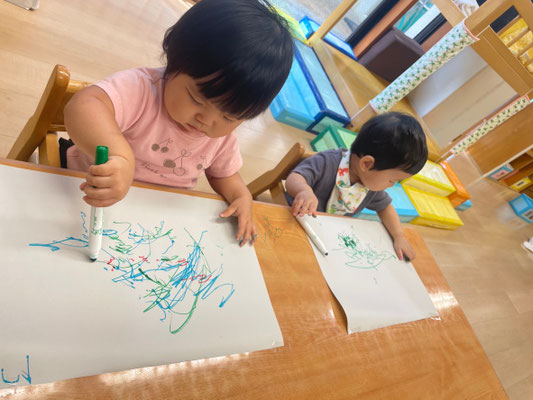 かたつむり組 · 2023/09/27 なぐり描き ペンを使ってなぐり描きをしました。 自分で好きな色を選び、思い思いに描いていましたよ✨ 〜散歩道のたぬきさん〜 散歩でよく通る道にある、大きなたぬきさん!! 「ぽんぽん見に行こう!」と言うと、あっち!と指を指したり、お腹をポンポンと叩いたり☺️ 段差に座って、ひとやすみ〜☺️ tagPlaceholderカテゴリ: 令和5年度かたつむり組