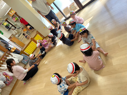 みつばち組 · 2023/10/23 頑張ったねみつばち消防団! 今日はみつばち消防団のみんなに消防訓練よく頑張りましたの証として、キラキラシールを貼った消防帽子の贈呈式をしました🧑🚒✨ 運動会ではいつもと違った雰囲気の中とってもよく頑張りました! そのあとはみんなでわらべうたをして遊びました😊✨ tagPlaceholderカテゴリ: 令和5年度みつばち組
