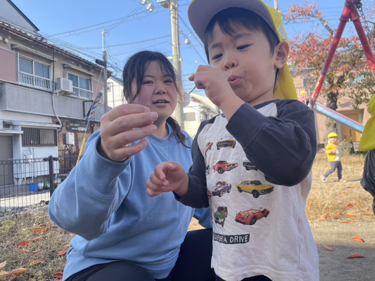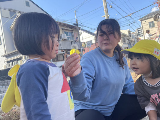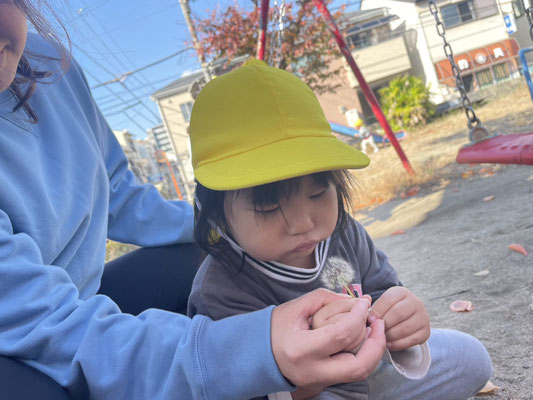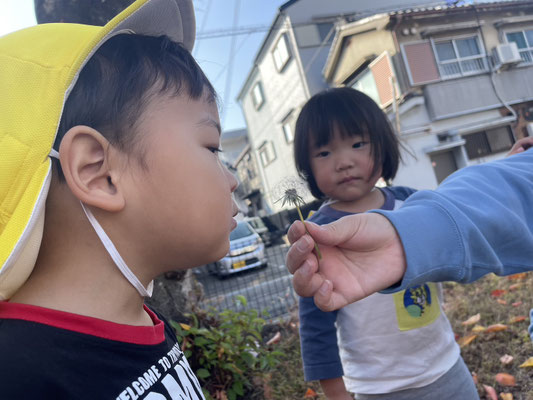 みつばち組 · 2023/11/28 タンポポの綿毛 公園でタンポポの綿毛を見つけました🌼 「これなに〜?」 「おはななの〜?」と不思議そうでしたがフーッと息を吹きかけていました😊 「おーい!とんで〜!」と カラスに向かって叫んでいました笑 tagPlaceholderカテゴリ: 令和5年度みつばち組