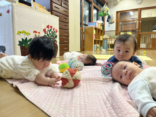 かたつむり組 · 2024/04/05 ボールあそび 布のボールで遊びました。 両手や片手でつかんだり、音の鳴るボールを目で追ったり、発達に合わせた遊びが出かかるように心がけています♪ tagPlaceholderカテゴリ: 令和6年度かたつむり組