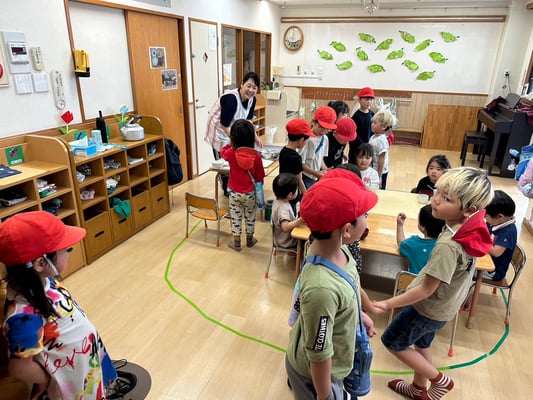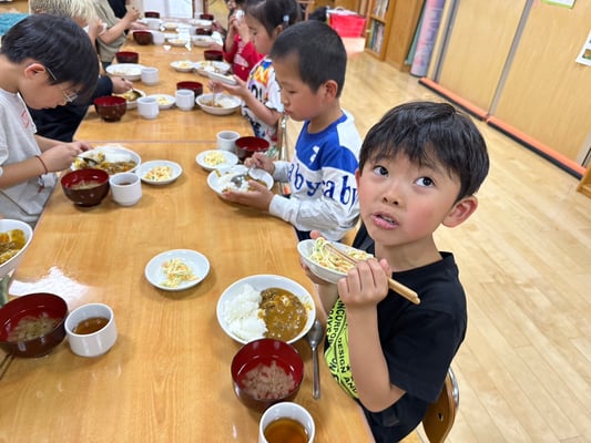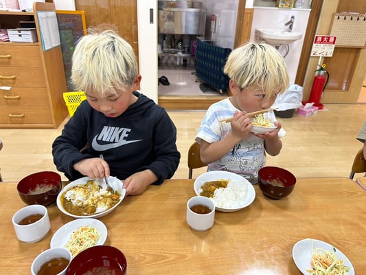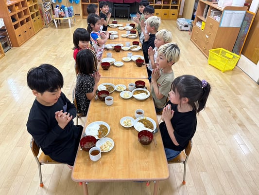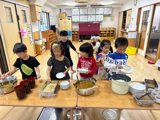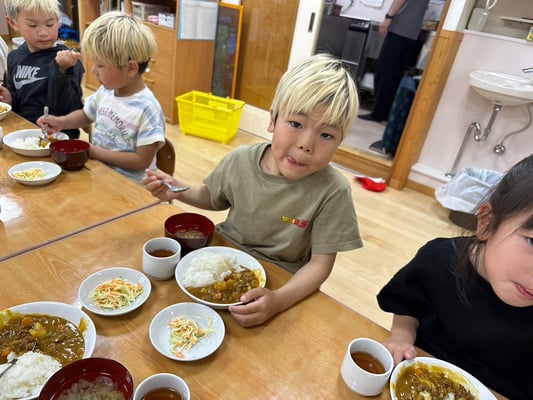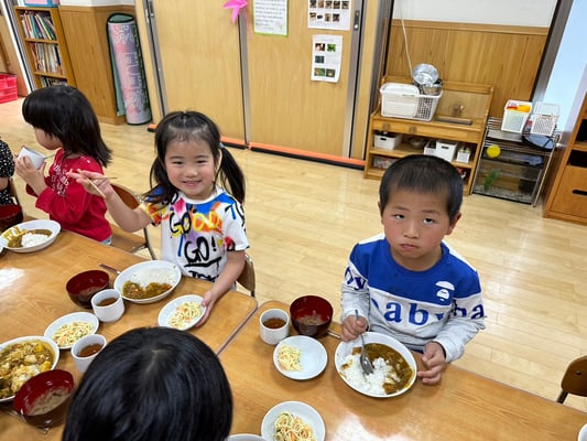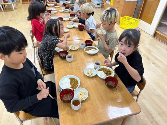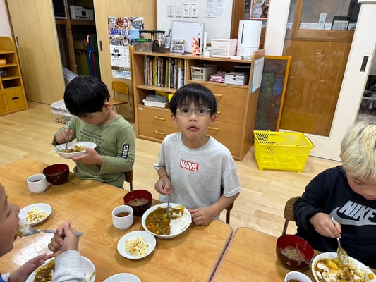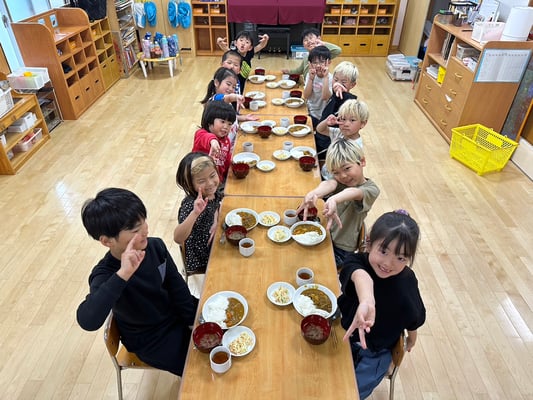 分園に帰る前に、本園にいる先生や在園児に「ただいま〜」と顔を見せてからみんなでカレー🍛✨!!