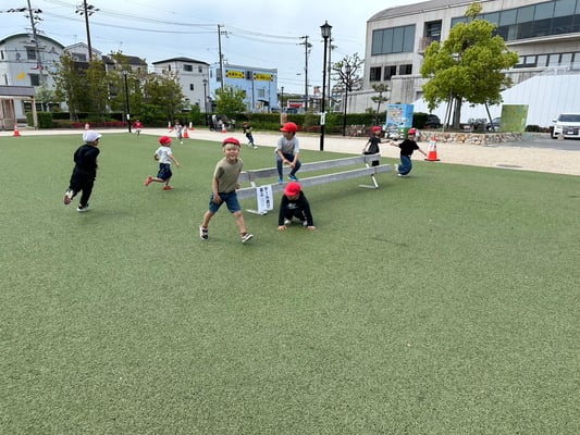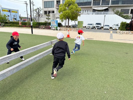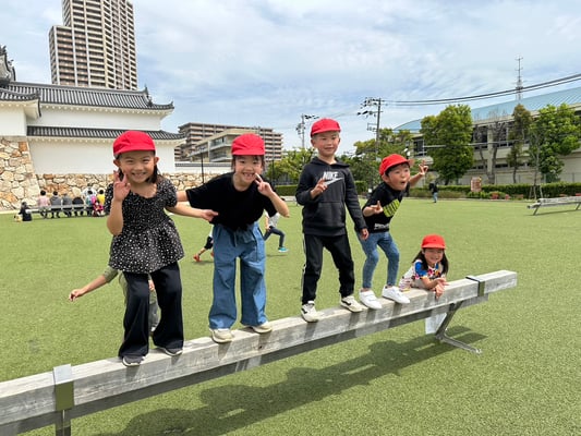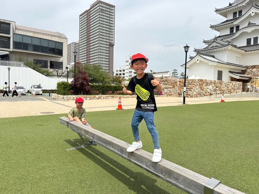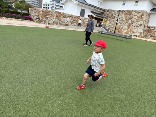 "お城の公園(尼崎城)!!"の声が多かったので、鬼ごっこと固定遊具をしに行きました!!「先生、手つなご」と手を繋いで歩き、かぶとむしぐみの頃が懐かしく思いましたよ☺️
