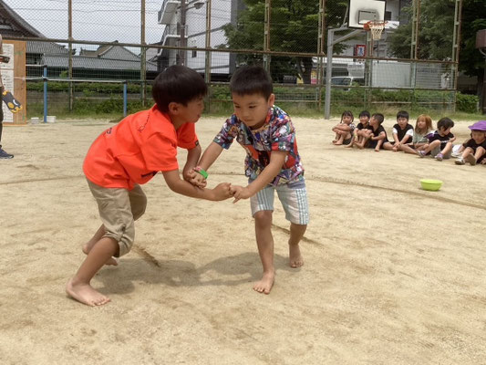 かぶとむし組 · 2024/05/30 すもう大会 かぶとむし組にとっては最後のすもう大会でしたが、とんぼ組ほたる組が終わったところで西チーム5勝、東チーム9勝で大きな差が•••。 勝負は見えてると思われた中でのスタートでしたがさすがはかぶとさん。 西チーム怒涛の追い上げでまさかの大逆転!勝負の行方は最後の一試合に託されることに! 結果は勝ち数同じでどちらも優勝✨ とっても白熱したすもう大会でしたよ。 tagPlaceholderカテゴリ: 令和6年度かぶとむし組, 令和6年度ほたる組