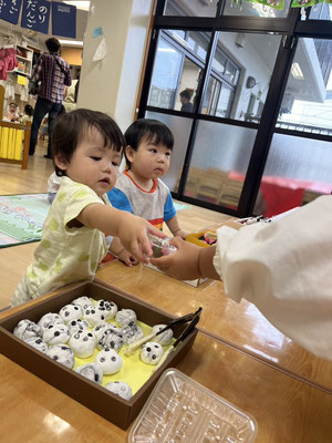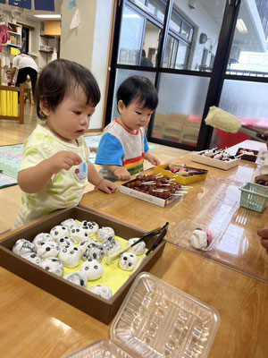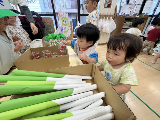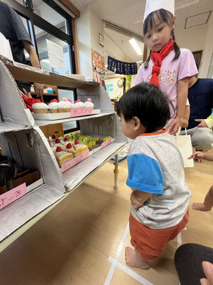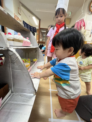 かたつむり組 · 2024/06/18 お店屋さんごっこ お兄さんお姉さんが準備してきたお店屋さんにお買い物に行きました。 あちこち興味津々で見て回っていましたよ。 指差しで興味ある商品を教えてくれました♪ tagPlaceholderカテゴリ: 令和6年度かたつむり組