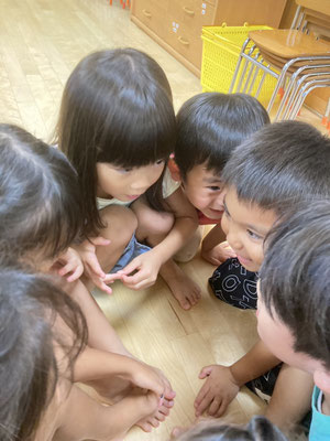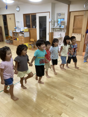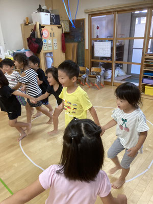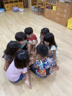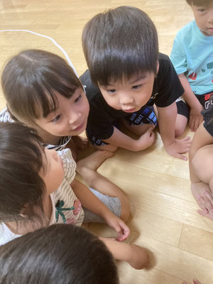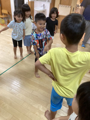 ひまわりっこ · 2024/09/06 はないちもんめ 4、5歳の幼児さんで『はないちもんめ』をしました。 『はないちもんめ』は地方によって色々な文言があって面白いです。 ♠︎勝って嬉しいはないちもんめ ♦︎負けて悔しいはないちもんめ ♠︎隣のおばさんちょっときておくれ ♦︎鬼が怖くてでられない ♠︎おふとん被ってちょっときておくれ ♦︎お布団ビリビリいかれない こんな調子で言葉遊びをしながら楽しみました♪ tagPlaceholderカテゴリ: 令和6年度かぶとむし組, 令和6年度ほたる組