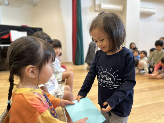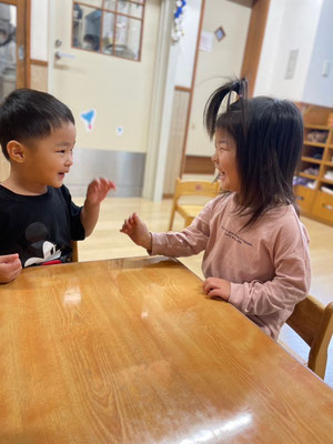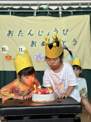 みつばち組 · 2024/11/22 11月のお誕生日会 11月はnちゃんの3歳お誕生日でした🎉 みんなからのおめでとうはとっても嬉しいですよね☺️ 今週は色んな公園へお散歩へ✨️ すきな遊具でめいいっぱい遊べましたよ🤭 お食事の待ち時間、保育士が絵本や手遊びをしなくても子ども達の中で遊びが広がっています! 「あいこでしょー」が続くじゃんけんや、にらめっこ見ていてホッコリします😊 自由遊び、夕方の様子です! tagPlaceholderカテゴリ: 令和6年度みつばち組
