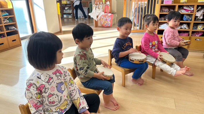 “楽器遊び”“パラバルーン”“オーナメント制作”“身振りあそび”の様子です!
