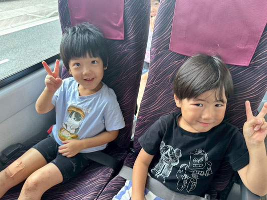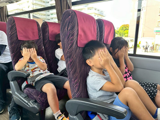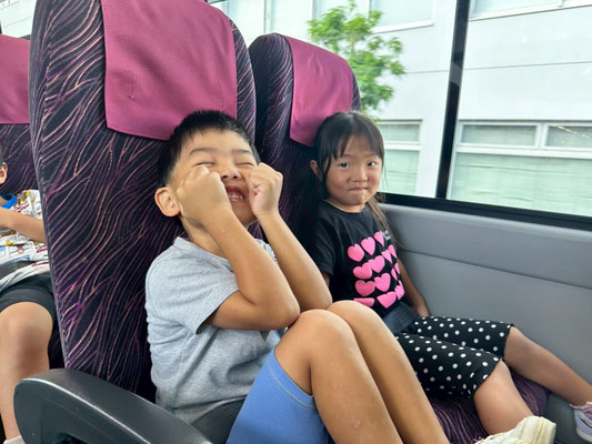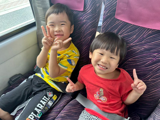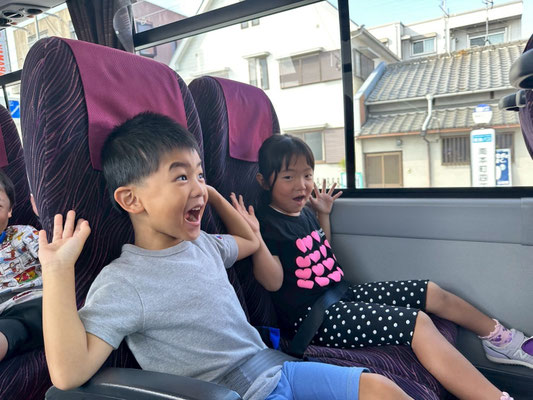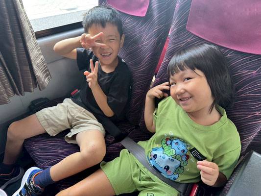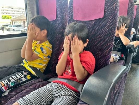 行き道のバスでは、朝の会や、手遊び、鳴き声クイズ、食べ物の断面クイズ等のレクリエーションをして賑やかな雰囲気でした☺️