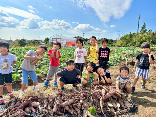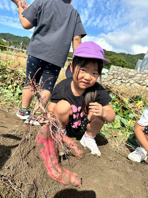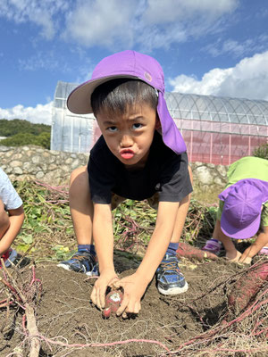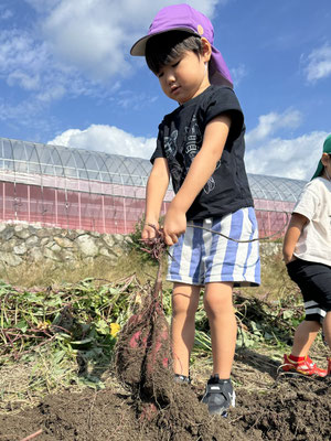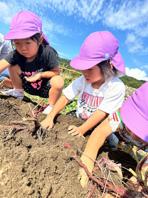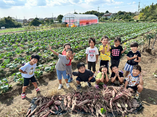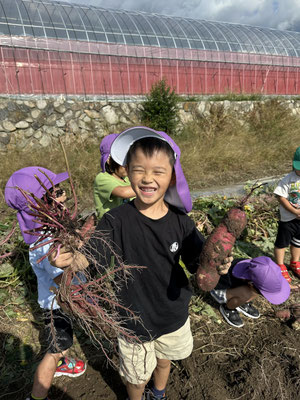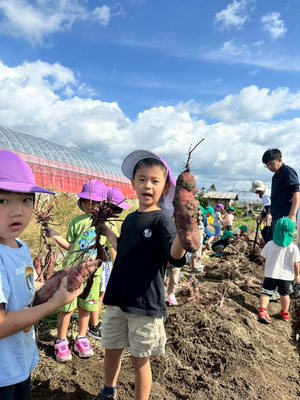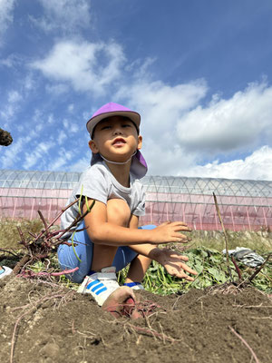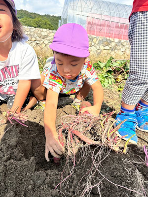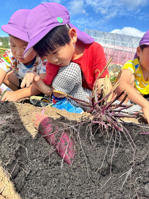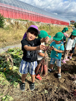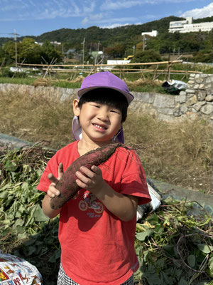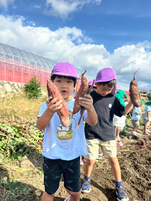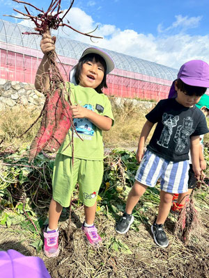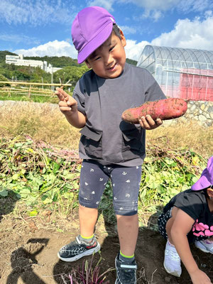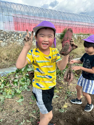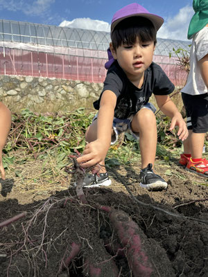 「みてー!出てきたよー!」「せんせー大きいお芋とれたー!」「ちっちゃーいあかちゃんのお芋かなぁ」と楽しそうにお芋掘りをしていましたよ🤭