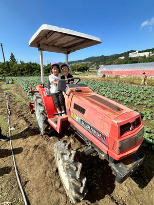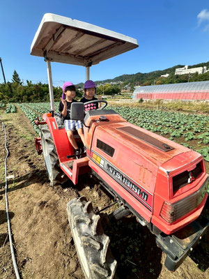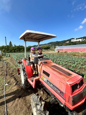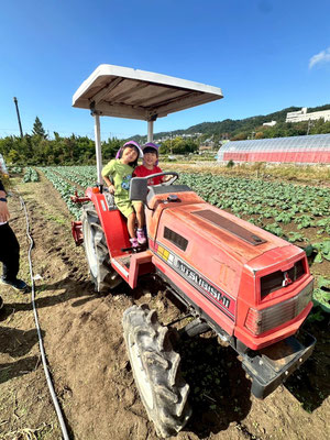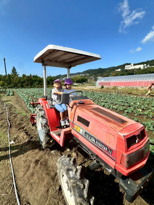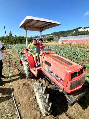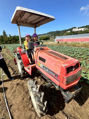 みんなが掘ったお芋と一緒に記念撮影をした後、トラクターに乗る体験もできましたよ🚧