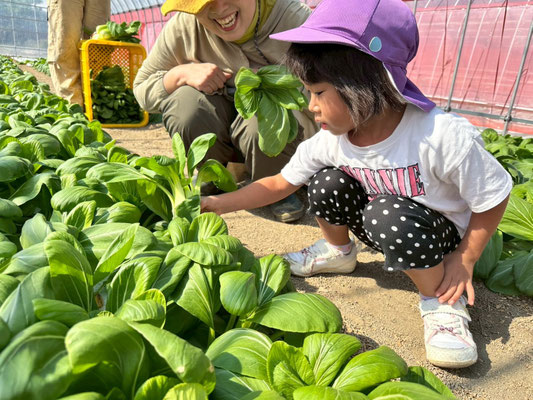 お弁当を食べた後は、特別にチンゲン菜を収穫したり、段差に並んで座ったりとまったり自然を感じていましたよ🍃