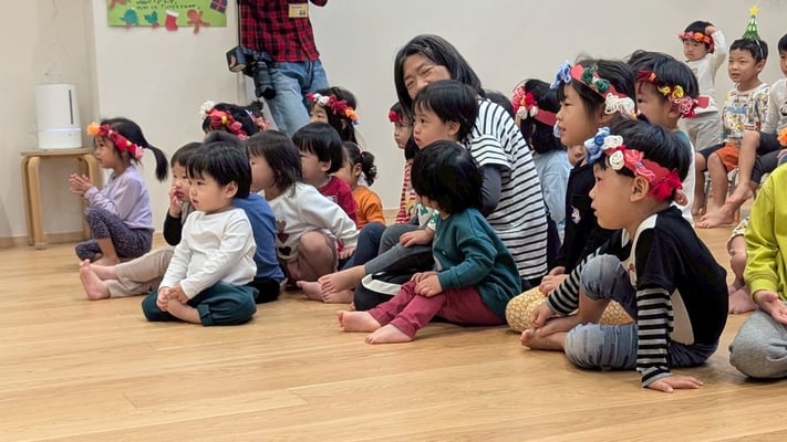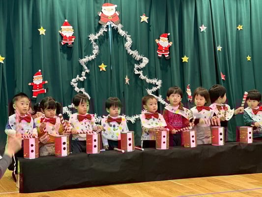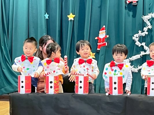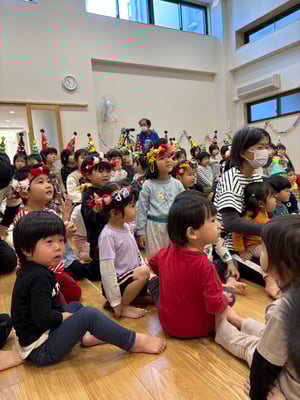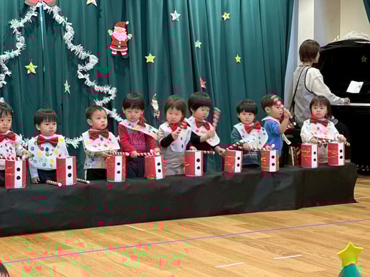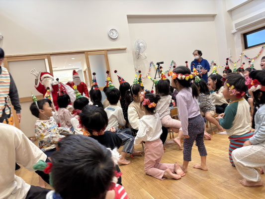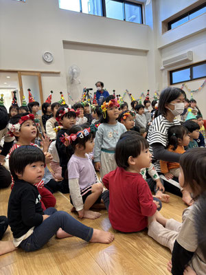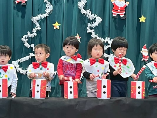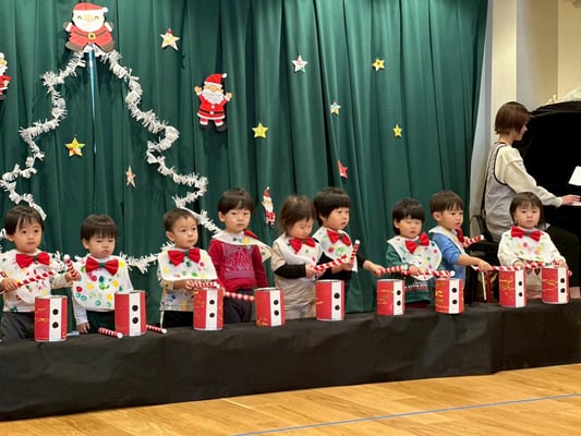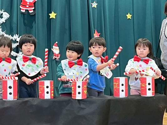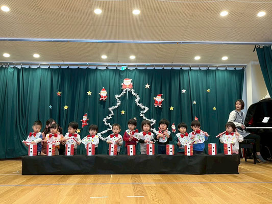 クリスマス会では手作りの太鼓を叩いて雪だるまチャチャチャの歌に合わせて演奏をしました🎶沢山のお客さんに見守られる中頑張りましたよ✨とってもとっても上手でした👏