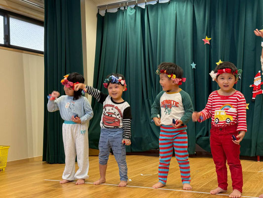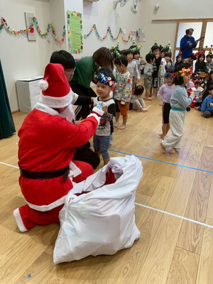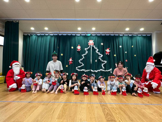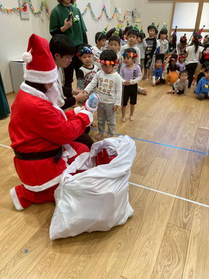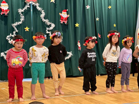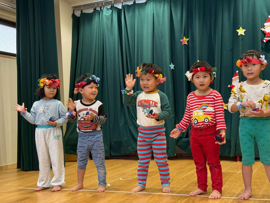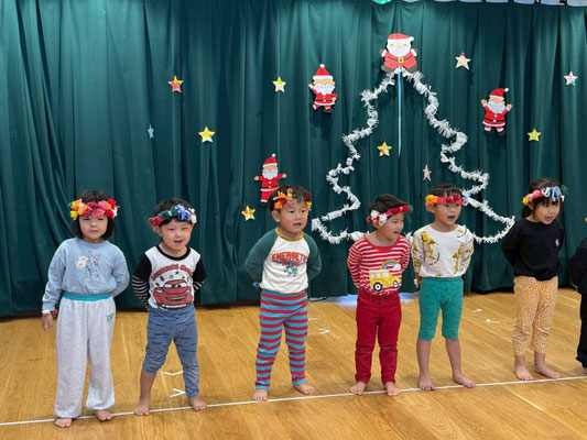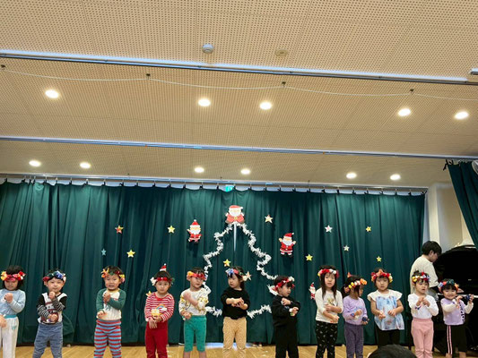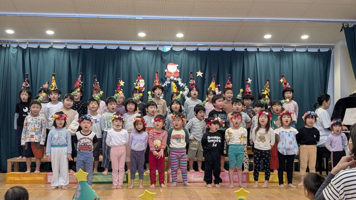 とんぼ組 · 2025/12/23 クリスマス会 サンタが街にやってくるを歌い、 後半からカスタネット、鈴で演奏しました! 上手に演奏し、大きな声で歌うとんぼさんステキでしたよ 先生たちの劇を見た後、なんだか鈴の音が聞こえ見るとサンタが来ました! サンタにプレゼントをもらって喜んでいました☺️ tagPlaceholderカテゴリ: 令和7年度とんぼ組