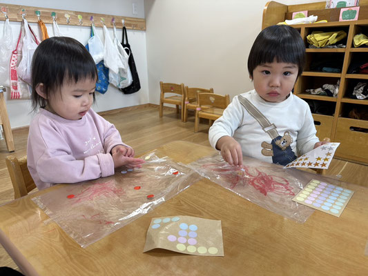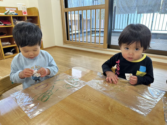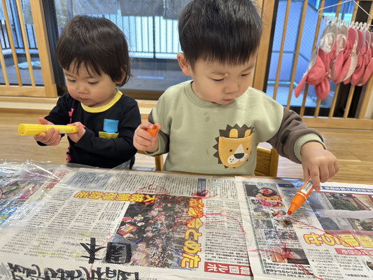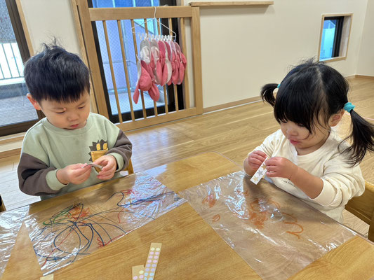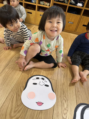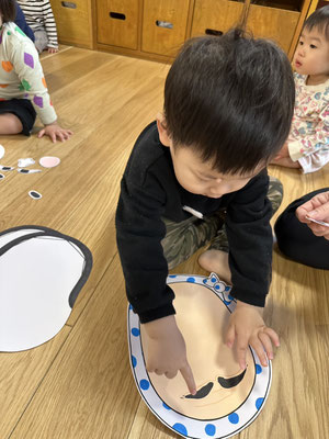 ちょうちょう組 · 2025/01/08 \\2025年// 明けましておめでとうございます🎍🌅 今年もよろしくお願いします🙇🏻♀️ 長〜い年末年始のお休みが明け、久しぶりにみんなの笑顔が見れました😊✨ お正月のうたを歌ったり、カルタ遊びをしたりお正月遊びをして過ごしました✨ お正月遊びで福笑いをしました👁️👃👄 目隠しは難しいので、見ながら!!「め?」「これなに?(眉)」など思い思いに顔を完成させます!!真剣な表情でパーツを置いていく子どもたち🧒🏻👧🏻どの福笑いもいい表情で思わず「ふふっ」と笑ってしまいます☺️ 凧上げ大会に向けて凧も作りました🪁 たくさん飛びますように〜🪁✨ tagPlaceholderカテゴリ: 令和6年度ちょうちょう組