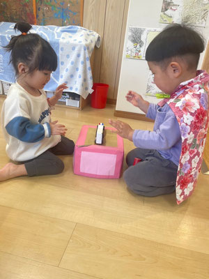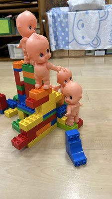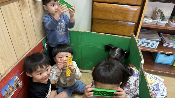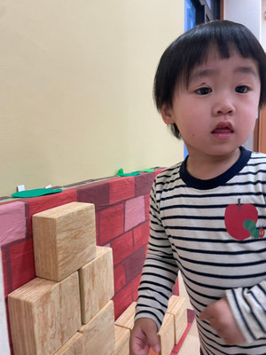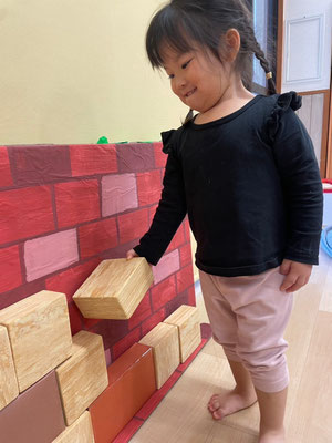 レンガのお家は、レンガに見立てた箱やブロックを積み上げイメージを膨らましました🧱