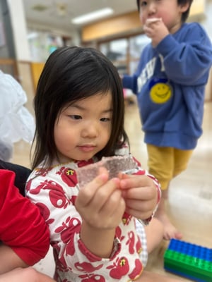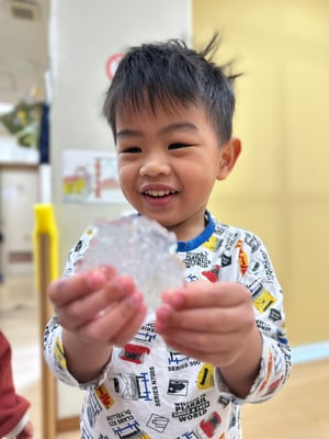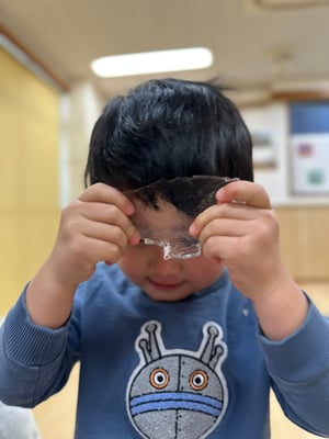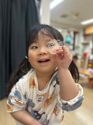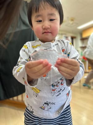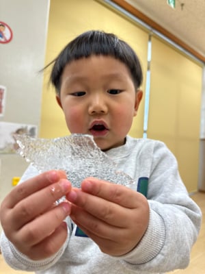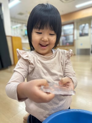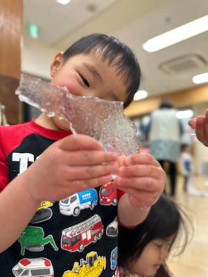 「つめたすぎるよ~」「みてみて~」と氷を持っては離しを繰り返していました🙌