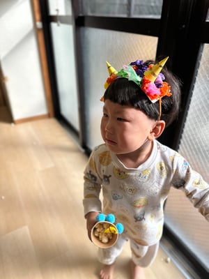 子ども鬼には「おにはーそとー!」と叫びながら一生懸命豆まきをしていましたよ!