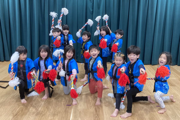 4歳ほたる組さんは今、土曜日の卒園式、成長を祝う会で披露する銭太鼓の練習をがんばっています💪