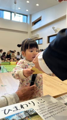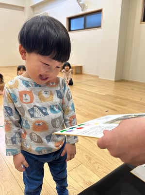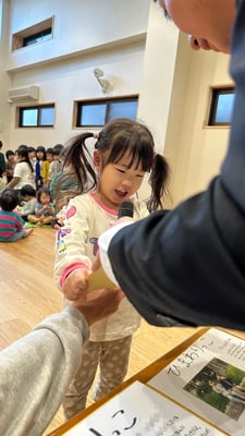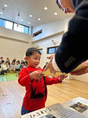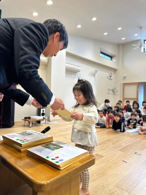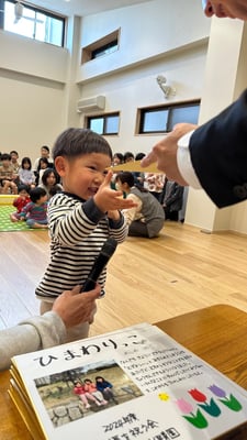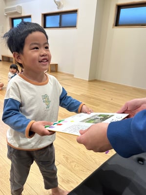 一人ひとりお名前を呼ばれたら「はいっ」と元気に返事をして、色紙を受け取りました🎁受け取る時には「ありがとう」と笑顔で言えていましたよ😊