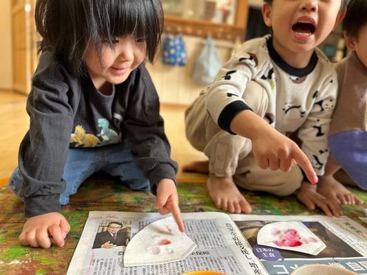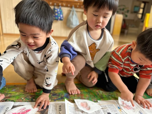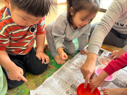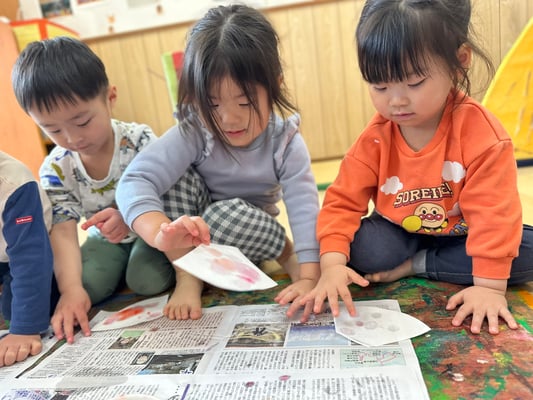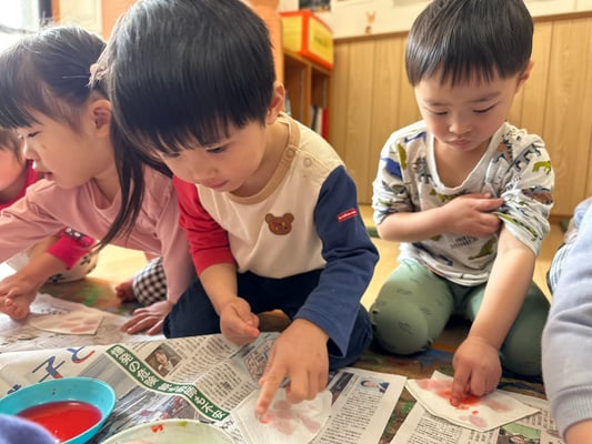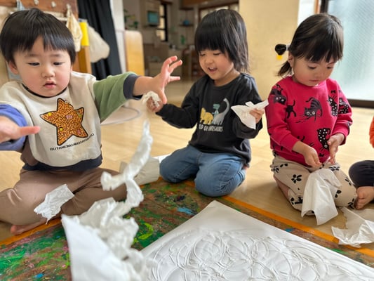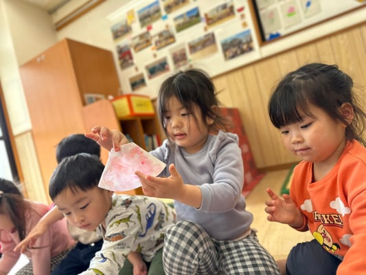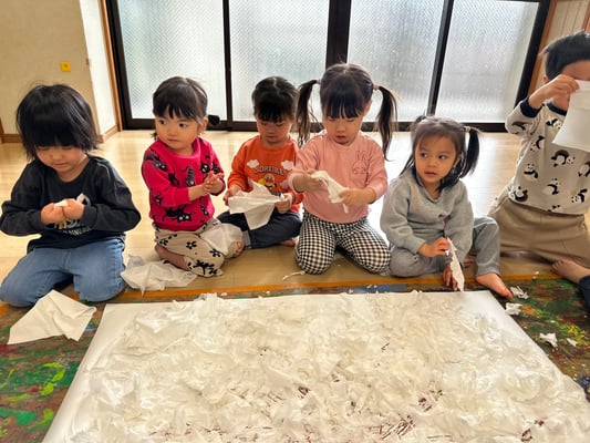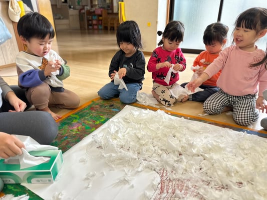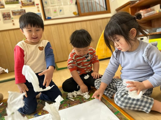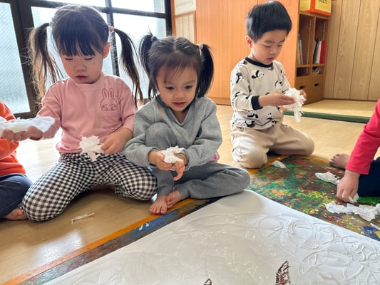 ふわ〜っと載せたり、えぃ〜と投げたり楽しく桜の土台を作りましたよ🤭
