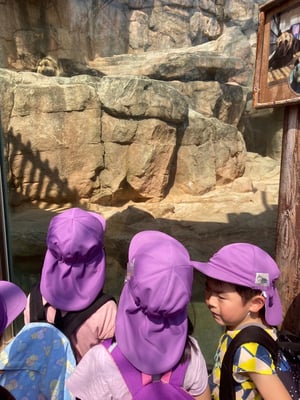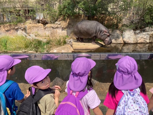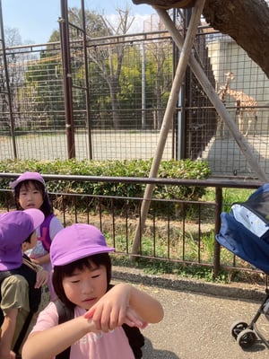 ほたる組 · 2025/03/26 お別れ遠足 年度末恒例のお別れ遠足ということで、3歳児さんと一緒に動物園🐘に行ってきました🚌 行きのバスの中ではお歌を歌ったり🎶動物クイズで盛り上がりました。 「カバ🦛の汗は赤色だって」 「シマウマ🦓の鳴き声は、ワンワン」 「えー⁉️しらんかったー」 キリン🦒やカバ🦛を間近で見ることができて大満足! でもやっぱり遠足の楽しみはお弁当ですね🍱 おいしいおいしい😆 またみんなで行こうね!楽しかったね🎵 tagPlaceholderカテゴリ: 令和6年度ほたる組