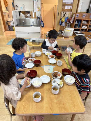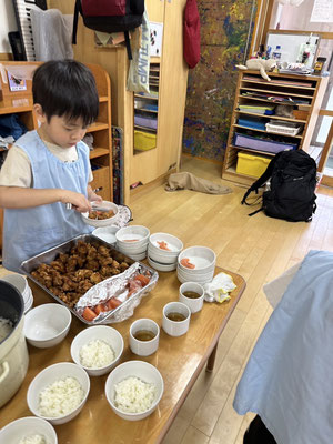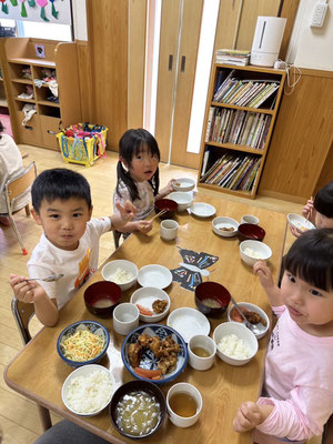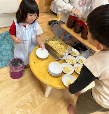 グループでのお当番活動も頑張り仲良く給食の時間を過ごしていますよ👩🍳
