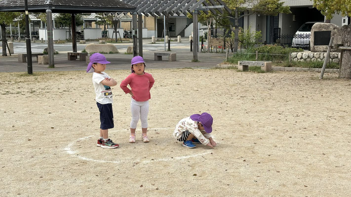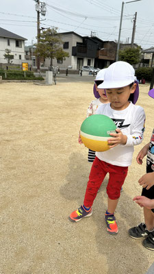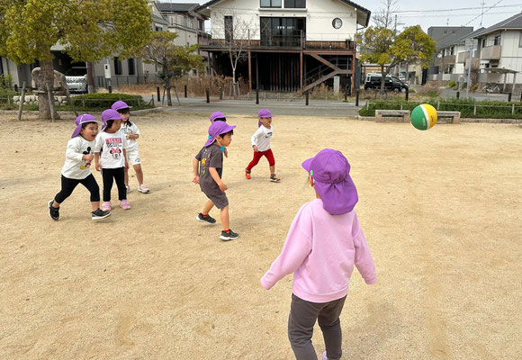 ボール遊びでは中当てをしましたよ!一生懸命ボールから逃げたり、2回目はボールに当たった子どもは外野にでてボールを転がしたりとルールを確認しながら楽しく遊びましたよ😆