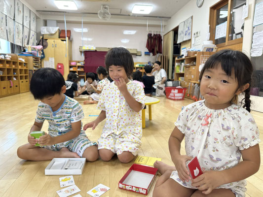 ほたる組 · 2025/09/30 お散歩 みつばち組さんと一緒にお散歩に行くと、手を繋ぎ「こっちだよ」と優しく声をかけてくれるほたる組さん しっかりお兄さんお姉さんの表情です✨️ 公園では、集団あそびやすきな遊具でたっぷり遊んでいますよ😏 消防訓練の様子を近くでみれる機会がありました🔥 初めて見る光景にみんな興味津々でしたよ👀 カルタも子どもたちだけで読む人、取る人で分かれて遊ぶ頻度も増えてきましたよ😊 tagPlaceholderカテゴリ: 令和7年度ほたる組