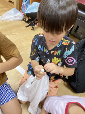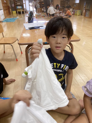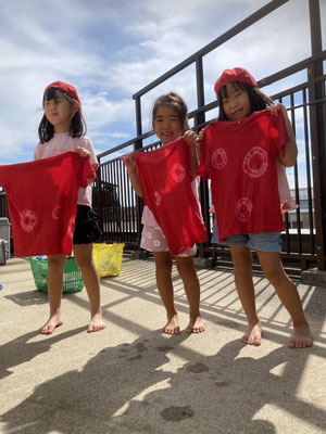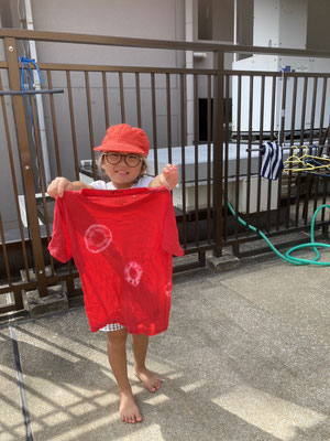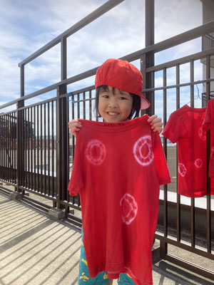 かぶとむし組 · 2025/10/02 おそろいTシャツ完成! 運動会で着るTシャツを染めました。 白いTシャツの模様を入れたい所にビー玉を当て、それを輪ゴムで縛ります。 そして染め粉で染めると鮮やかなシャツの完成! きれいな花火が開いたような模様ができました。 お揃いのシャツを着て、気持ちを一つに練習を頑張るぞー💪 tagPlaceholderカテゴリ: 令和7年度かぶとむし組