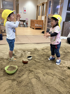 みつばち組 · 2025/10/23 いらっしゃいませ 雨だったのでピロティで砂遊びを楽しみましたよ😊 「いらっしゃいませ〜」 「ラーメンはいかがですか〜」 「かき氷はいかがですか〜」といろんなお店が開店しました‼️ tagPlaceholderカテゴリ: 令和7年度みつばち組