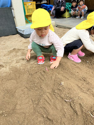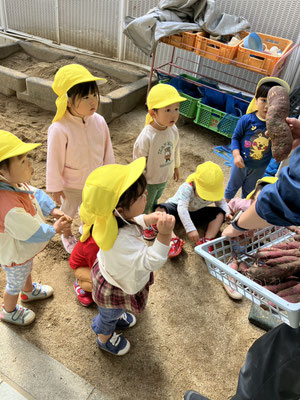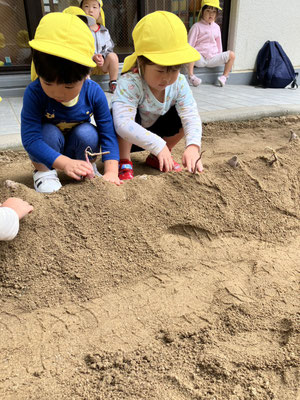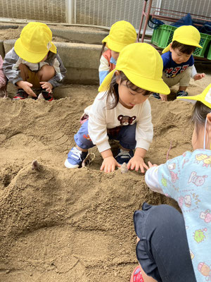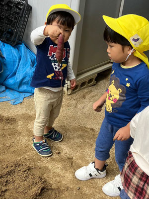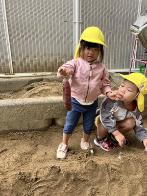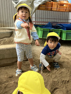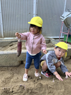 みつばち組 · 2025/10/29 おいもほり 園庭でおいもほりをしましたよ🍠 土を優しく移動させ、さつまいもが出てくると「あった」と嬉しそうに見せてくれました😊 来年はいもほり遠足に行くよ😊 tagPlaceholderカテゴリ: 令和7年度みつばち組