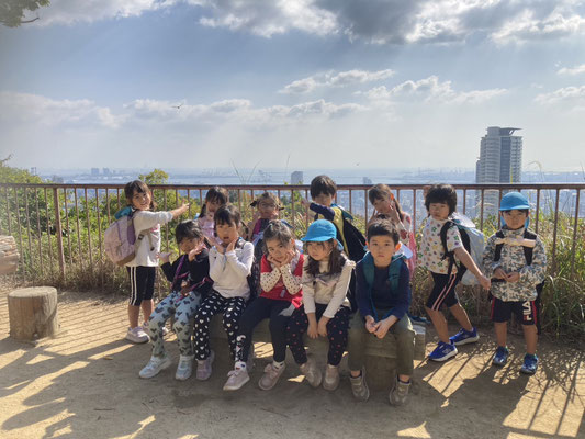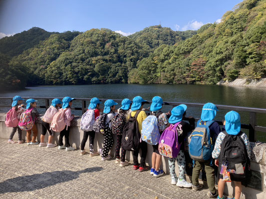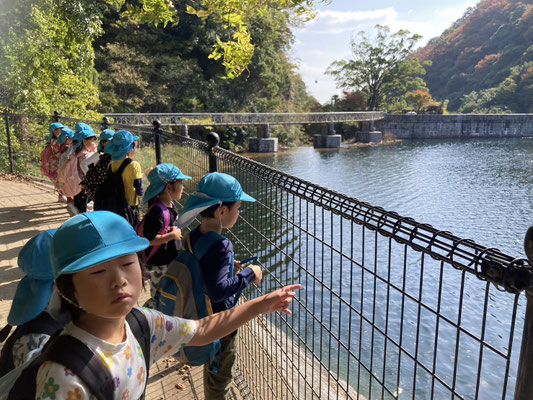 見晴らし展望台、貯水池を通り、どんぐり拾い等して、