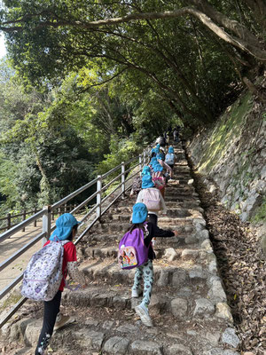 想像以上に険しい階段にヒーヒーいいながらも、楽しく会話しながら、まだ余裕です♪