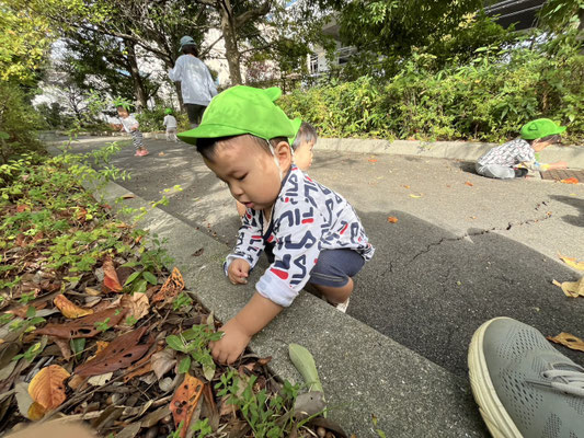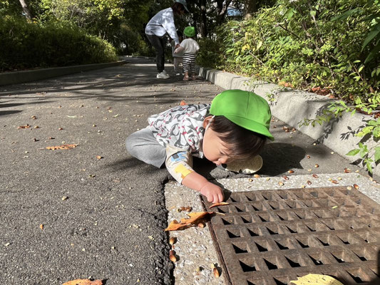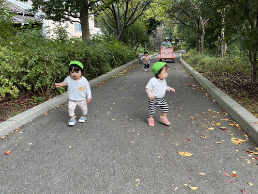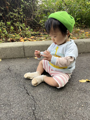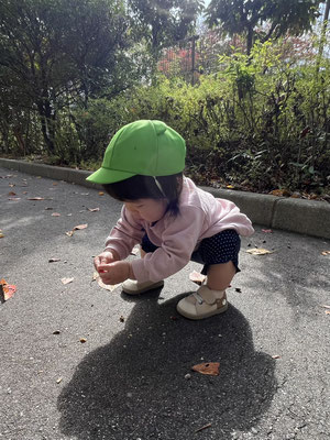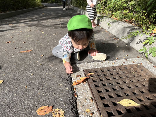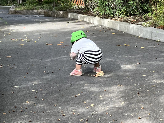 かたつむり組 · 2025/11/12 秋のお散歩 中在家緑地公園に行ってきました。 公園に着くまでの小道にどんぐりや落ち葉が落ちていて、拾ったり、隙間に落としたりしました。 鳩がどんぐりを突いているのを見つけると、嬉しそうに追いかけていました。 歩いたり、ハイハイをしたりして思い思いに散策を楽しみました♪ tagPlaceholderカテゴリ: 令和7年度かたつむり組