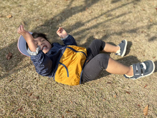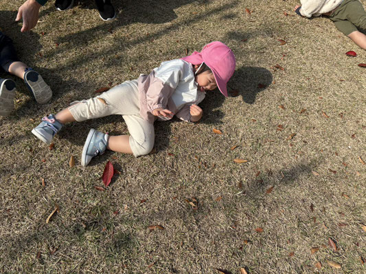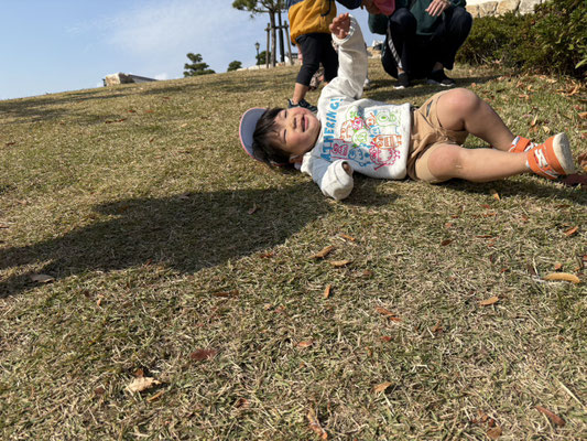 芝生の広場でゴロンと転がってみました!気持ちいいね〜✨