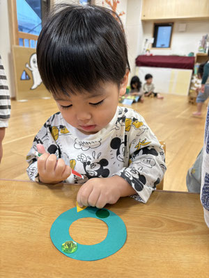 ちょうちょう組 · 2025/12/05 クリスマスリース クリスマスリースはシールをペタペタと貼って作りました✨ 壁面のツリーもクリスマス仕様に変身しました🎄 tagPlaceholderカテゴリ: 令和7年度ちょうちょう組