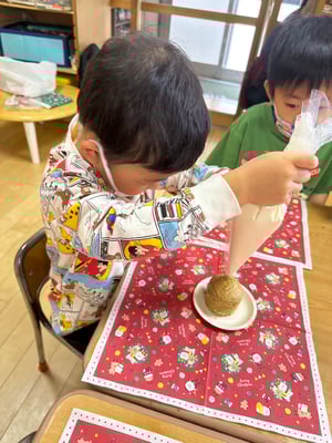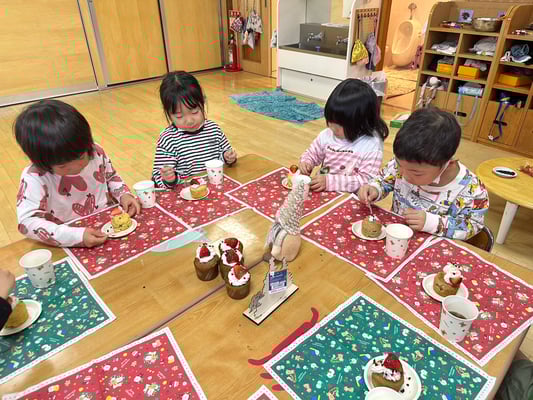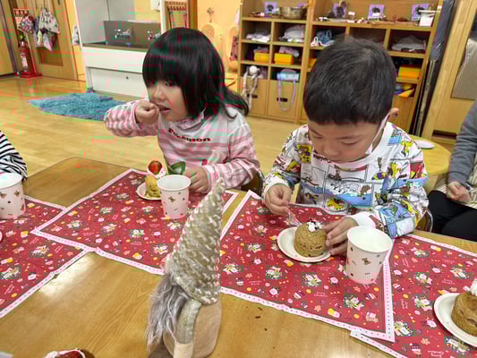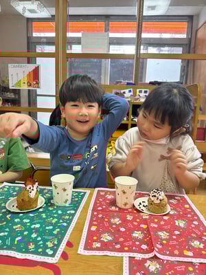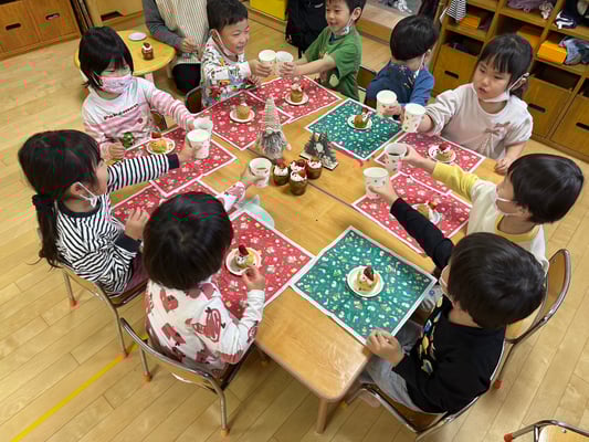 給食の先生にお願いして焼いてもらい午後からクリスマスパーティー🎄