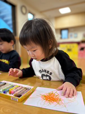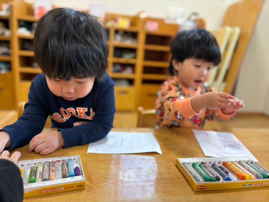 クレヨンで絵を描いたり、小麦粘土で遊んだりもしました😊