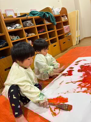 1月の壁面制作では絵の具を使って色塗りをしました🎨