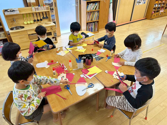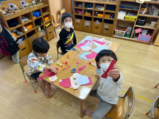 ハサミ練習も兼ねて、サンタさんを作りましたよ🎅